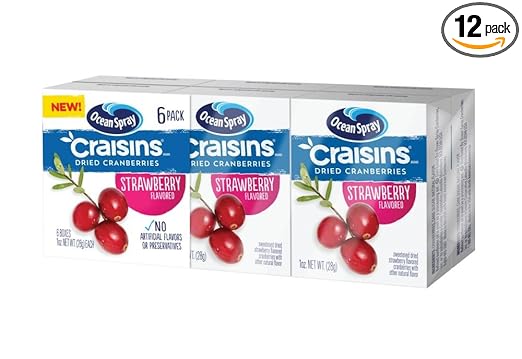 Ocean Spray Craisins Dried Cranberries Snack Pack Strawberry 1 Ounce Pack Of 12