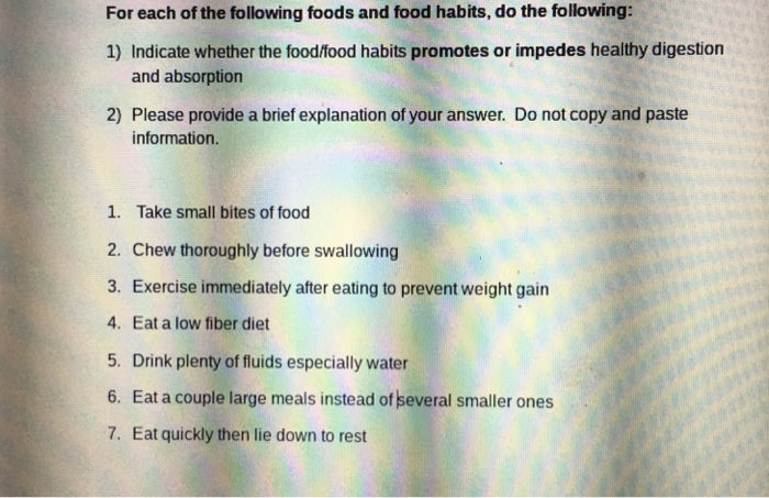 Solved For Each Of The Following Foods And Food Habits D