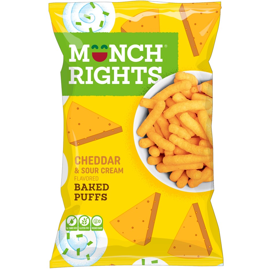 Munch Rights Cheddar Sour Cream Baked Veggie Puffs 3 Oz Bags
