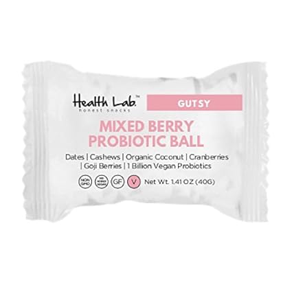 Gutsy Mixed Berry Probiotic Protein Ball By Health Lab Natural Vegan Snack Non Gmo Non Soy Dairy And Gluten Free 12 Pack
