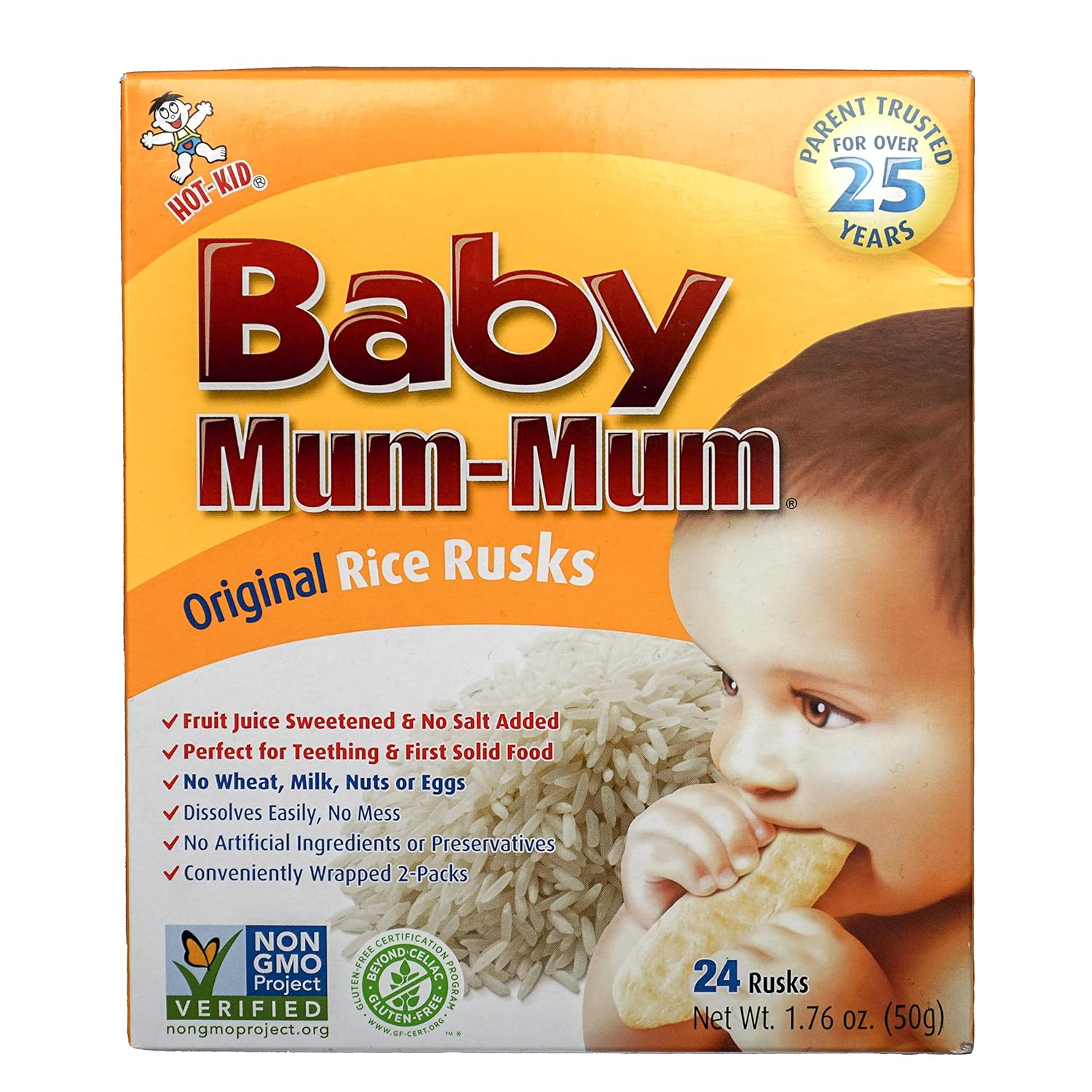 Hot Kid Baby Mum Mum Rice Rusks Banana Gluten Free Allergen Free Non Gmo Rice Teether Cookie For Teething Infants 1 76 Ounce Pack Of 6